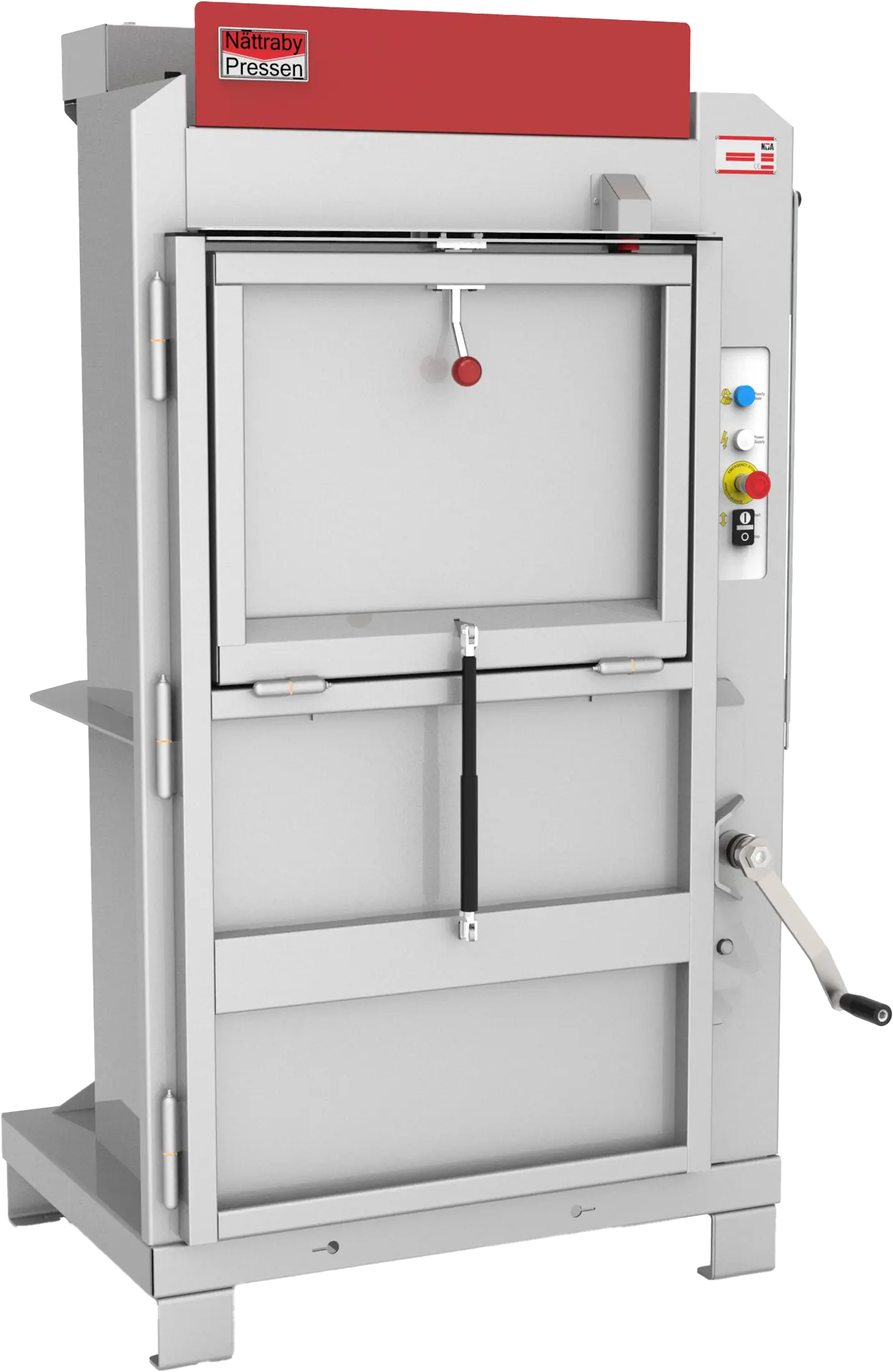 Den er velegnet til komprimering af bølgepap, blød og hård plast, kartoner m.m.