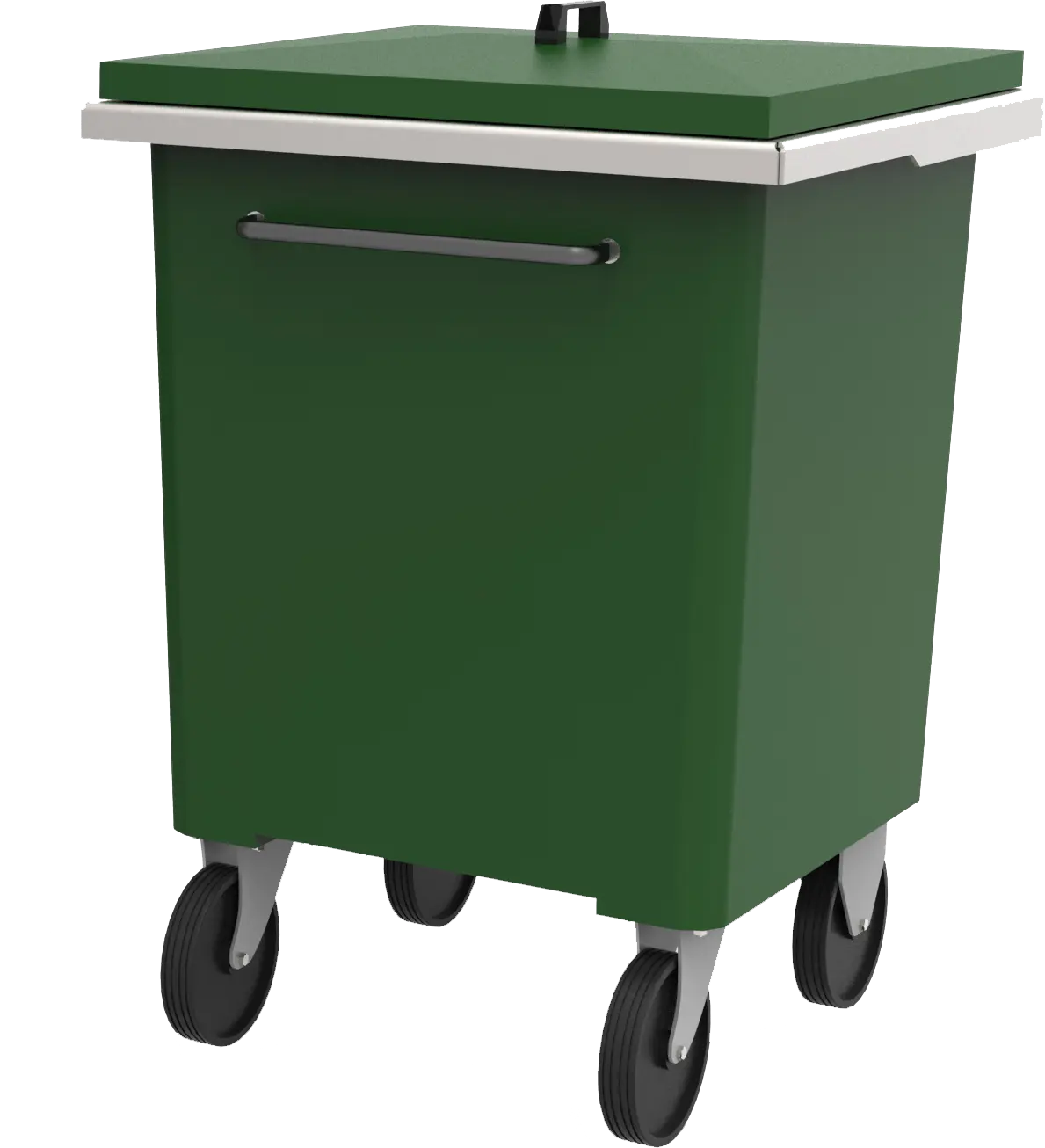Pressen NP4W er velegnet til blødere restaffald. Affaldet presses ned i en 370 liters forstærket plastbeholder, der ruller på hjul.
